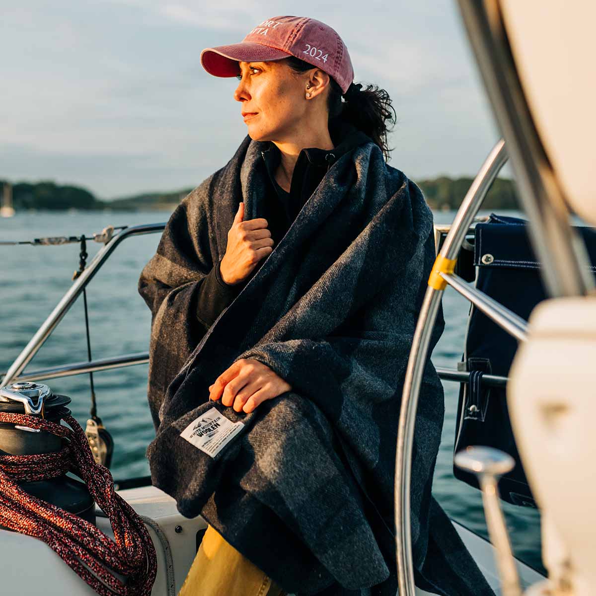 wool blanket good for boating #color_gray-and-blue-plaid