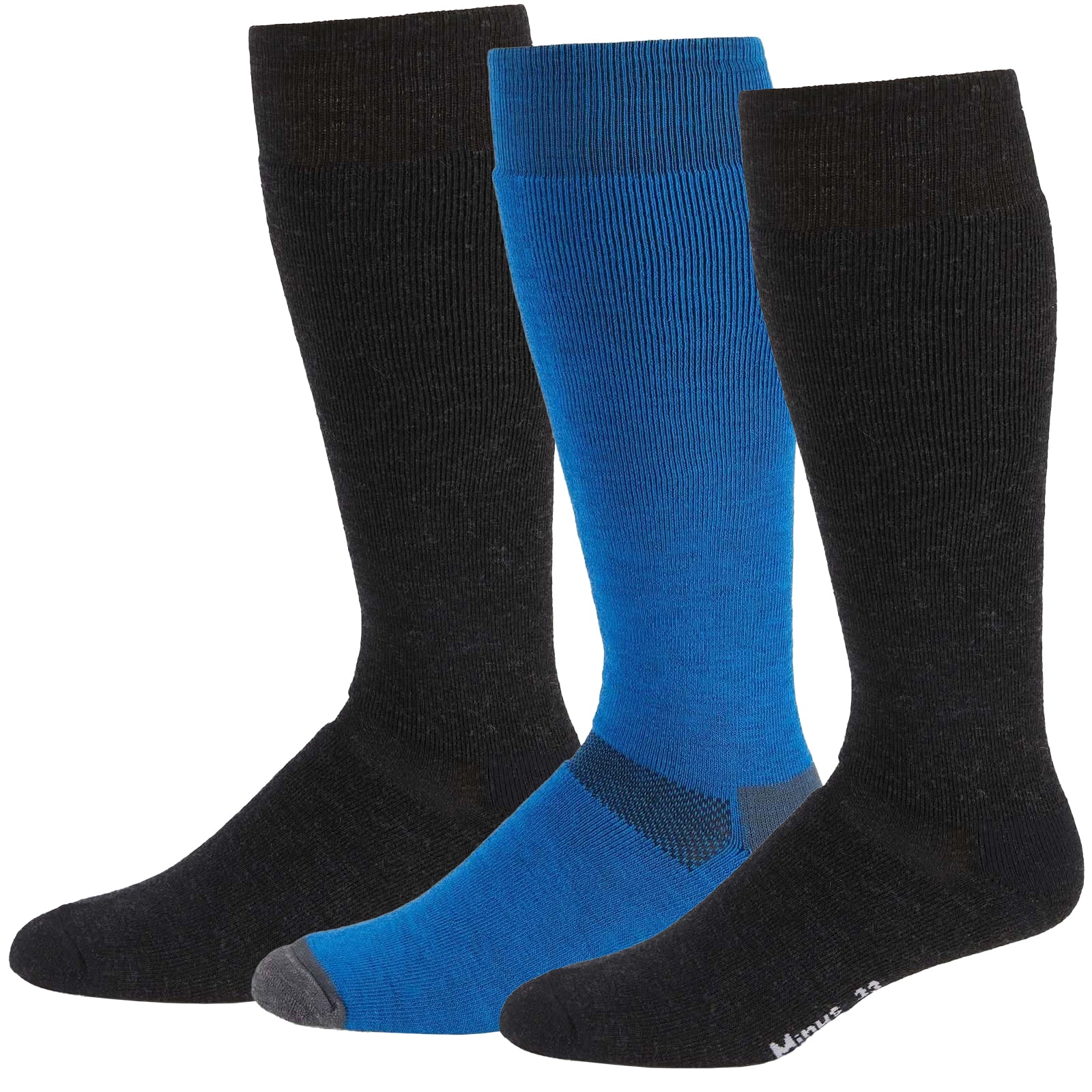 Each pack contains: (2) black socks and (1) blue sock.
