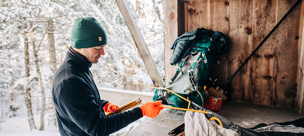 man setting up tent wearing wilderness expedition man hiking wearing blaze orange wilderness expedition vest